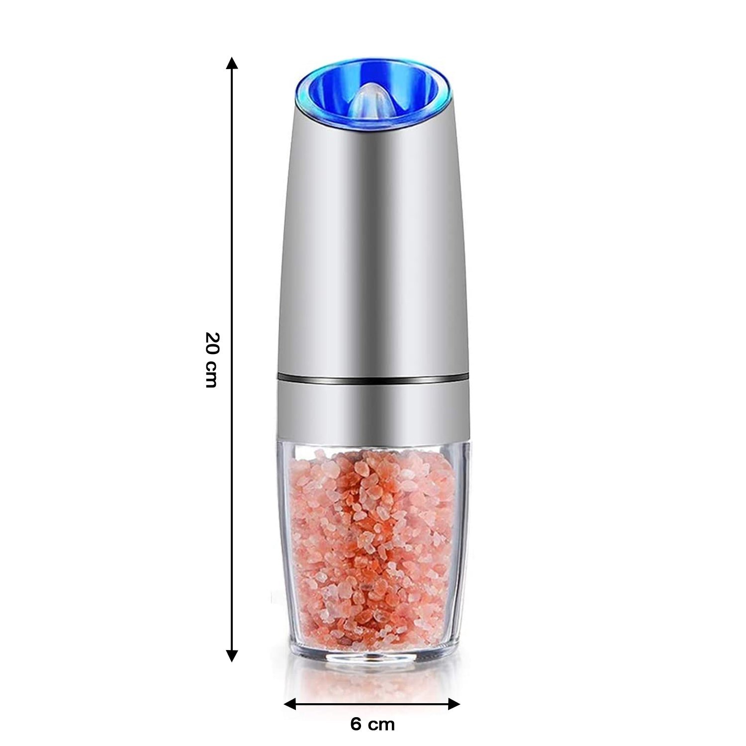 Experience the future of effortless seasoning with this Gravity Electric Salt and Pepper Mill, designed to blend technology, style, and performance. Crafted with a sleek stainless-steel finish and a transparent spice container, it offers both durability and elegance for your kitchen or dining table. Simply tilt the grinder to activate the automatic grinding mechanism, and watch as freshly ground pepper or salt is dispensed evenly, enhanced by a soft LED light for precision control, even in low light. The adjustable coarseness knob allows you to select from fine to coarse textures, catering to every culinary need. Perfect for chefs, home cooks, and food lovers who appreciate convenience and sophistication, this grinder adds a professional touch to every meal.
