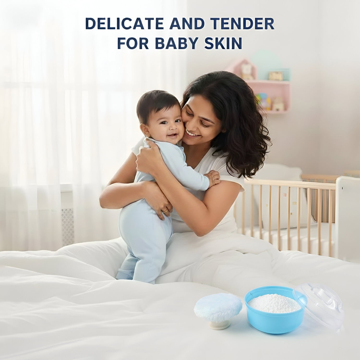 Soft applicator puff for gentle baby skin contact