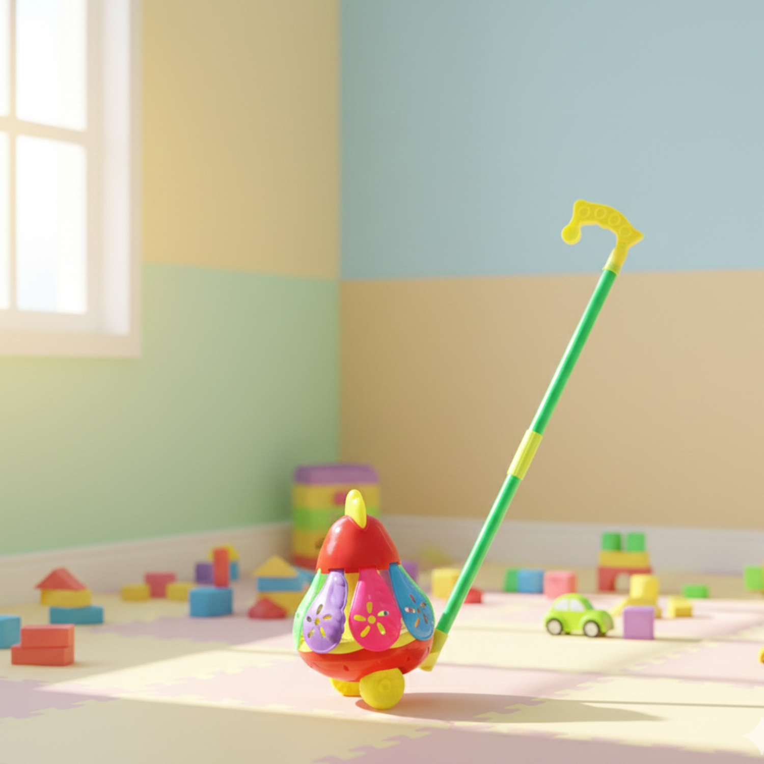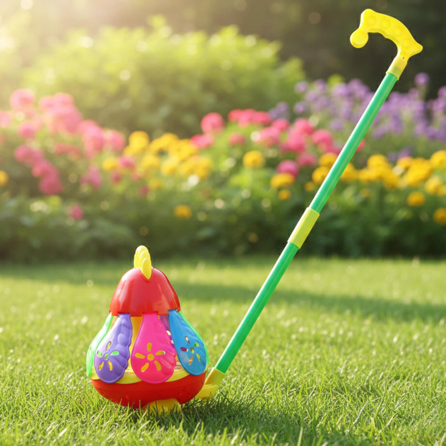 Carnival Chicken Toy for Kids, Colorful Fun Push Toy with Rolling Sound, Perfect for Toddlers, Interactive Play, and Early Motor Skill Development – 1 Pc