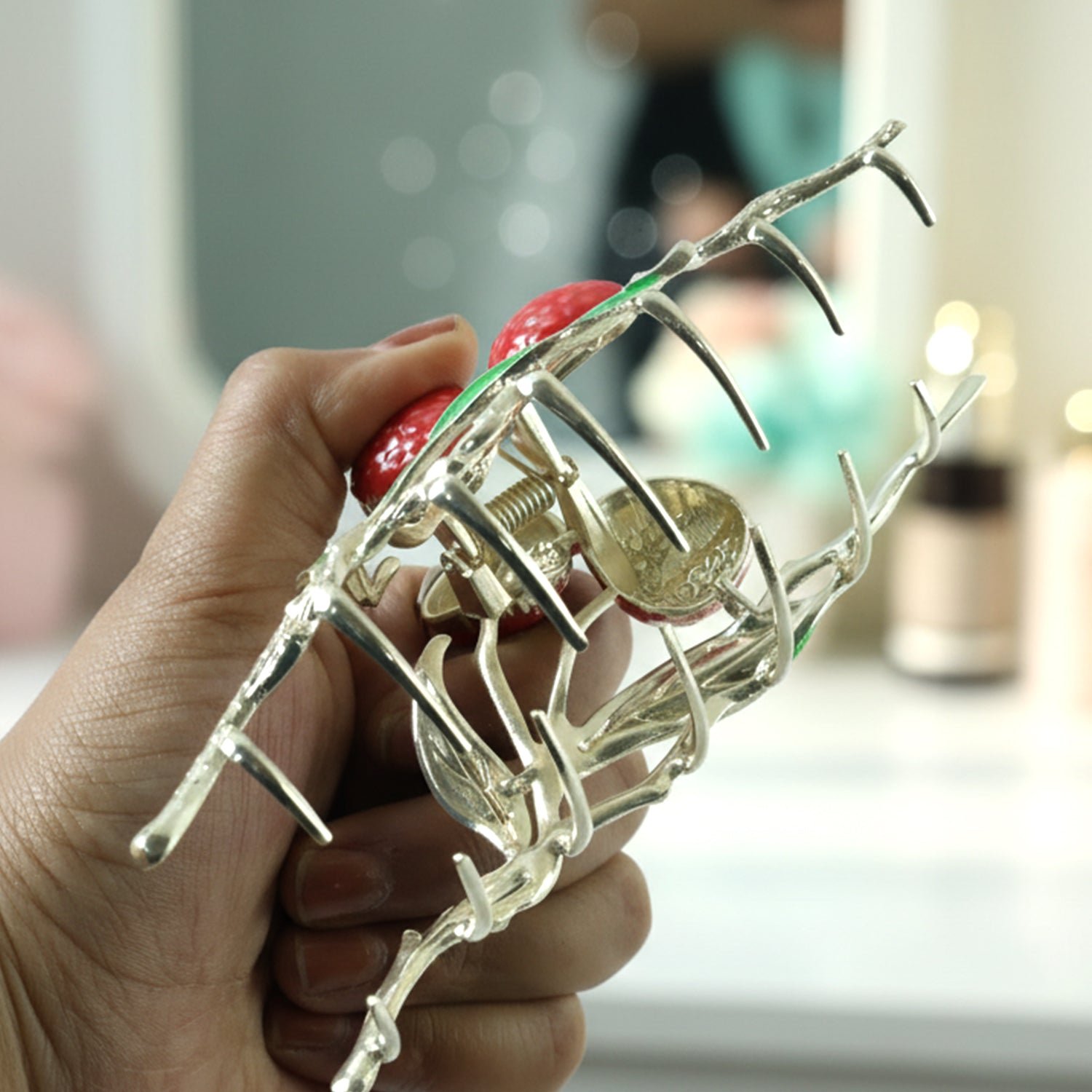 Decorative Berry Fruit Design Hair Claw Clip with Leaf Pattern for Elegant Hair Styling – 1 Piece
