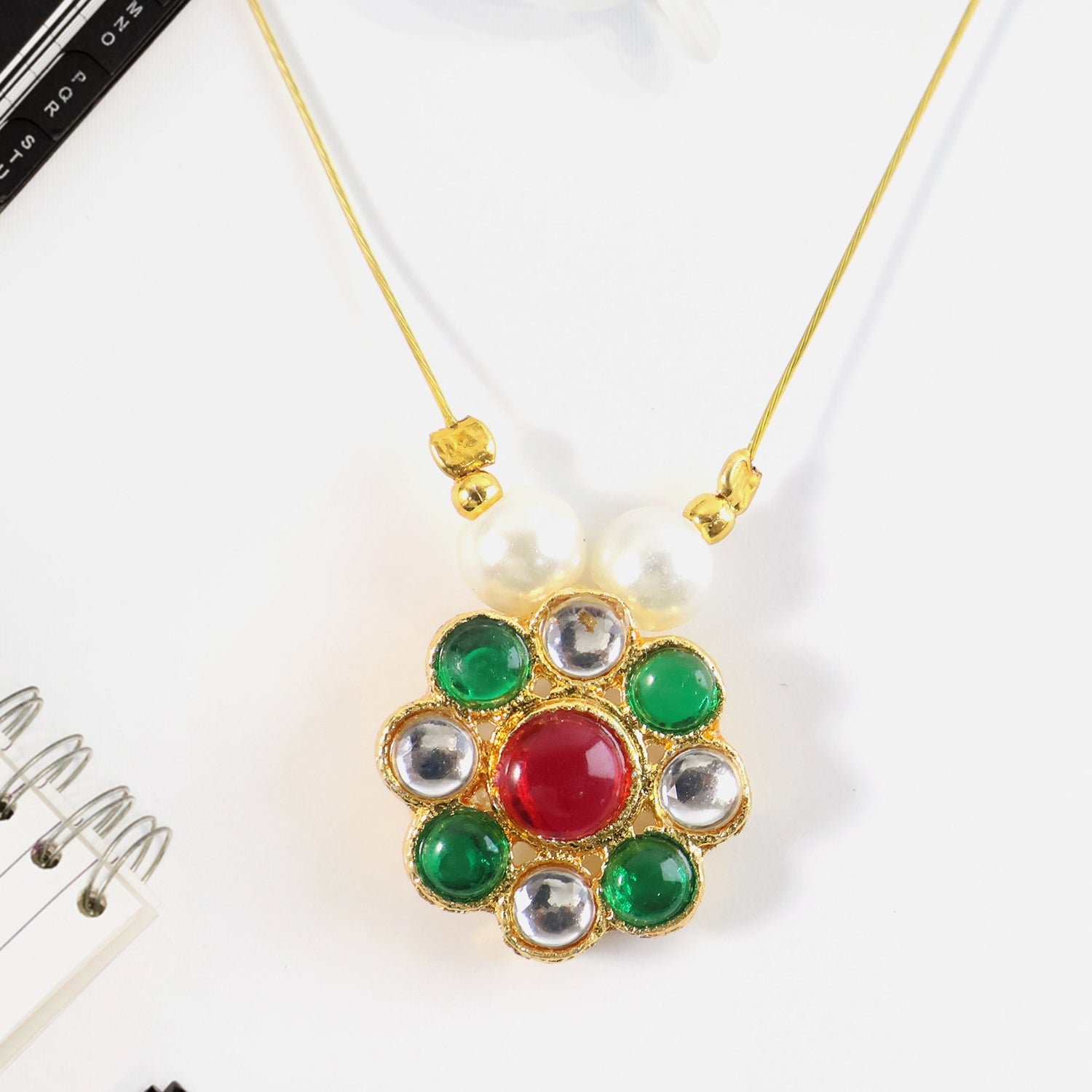 Elegant Traditional Multicolor Stone & Pearl Pendant Chain for Women – Delicate Daily Wear & Festive Jewellery (1 Pc)